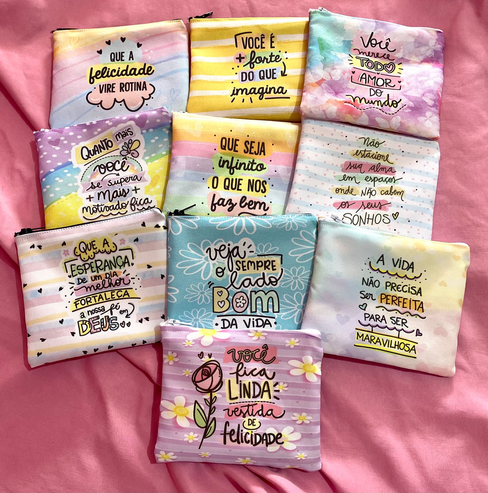 💬 Você pode enviar sua arte ou escolher entre nossas opções prontas! Temos mais de 30 frases & fundos motivacionais, de fé ou empoderamento para aplicar nas estampas.